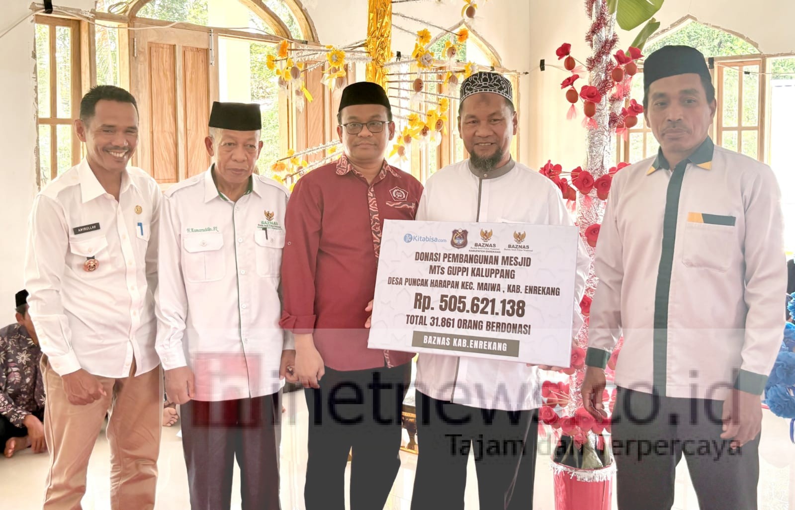 inetnews.co.id. Pemda Enrekang merespon peresmian Masjid MTs Guppi di Desa Kaluppang,kecamatan Maiwa atas sumbagan dan sedekah masyarakat melalui BAZNAS Enrekang dan diresmikan asisten II Gaswan.