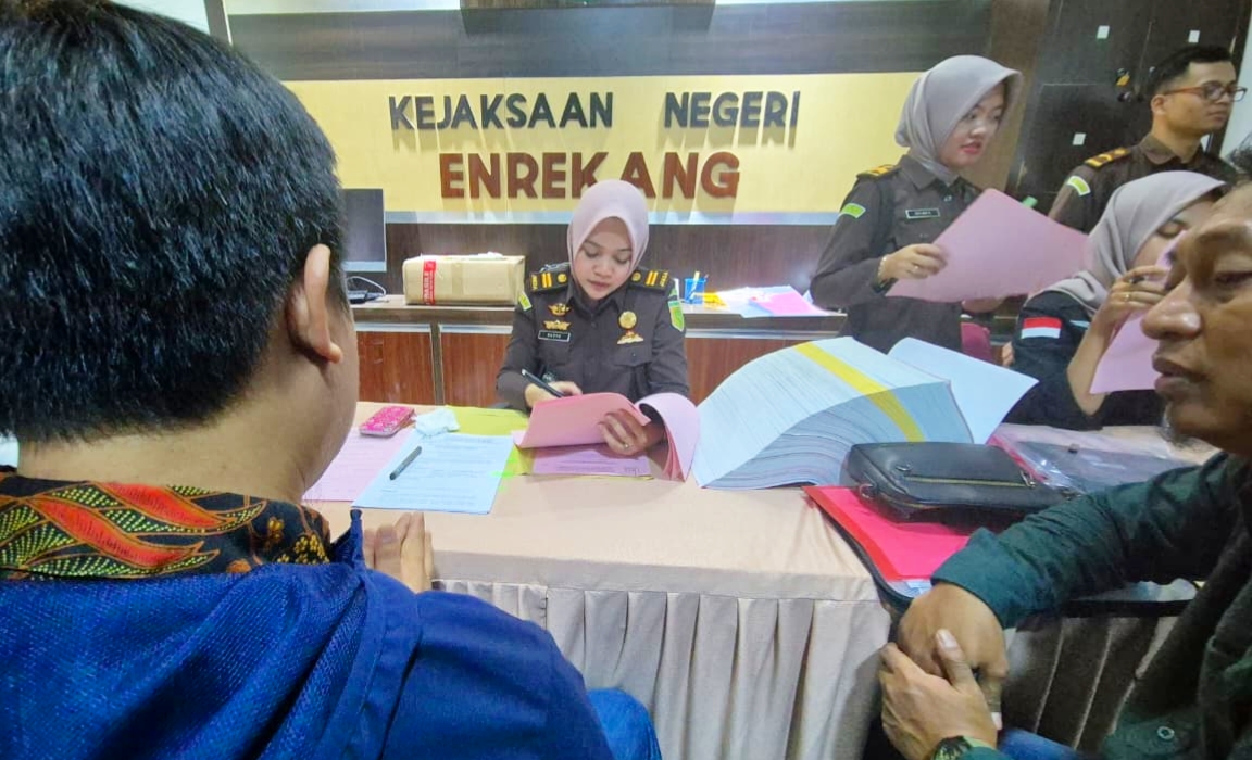 Proses penyerahan barang bukti dan kedua tersangka SM dan HD di Kejaksaan Negeri Enrekang langsung ditangani Kasi Barang Bukti (BB) bersama Tim Pidsus ,Nadya Khaeriya Yusran,SH.MH mulai dilakukan pemeriksaan atas keakuratan dan kelengkapan dokumen perkara.