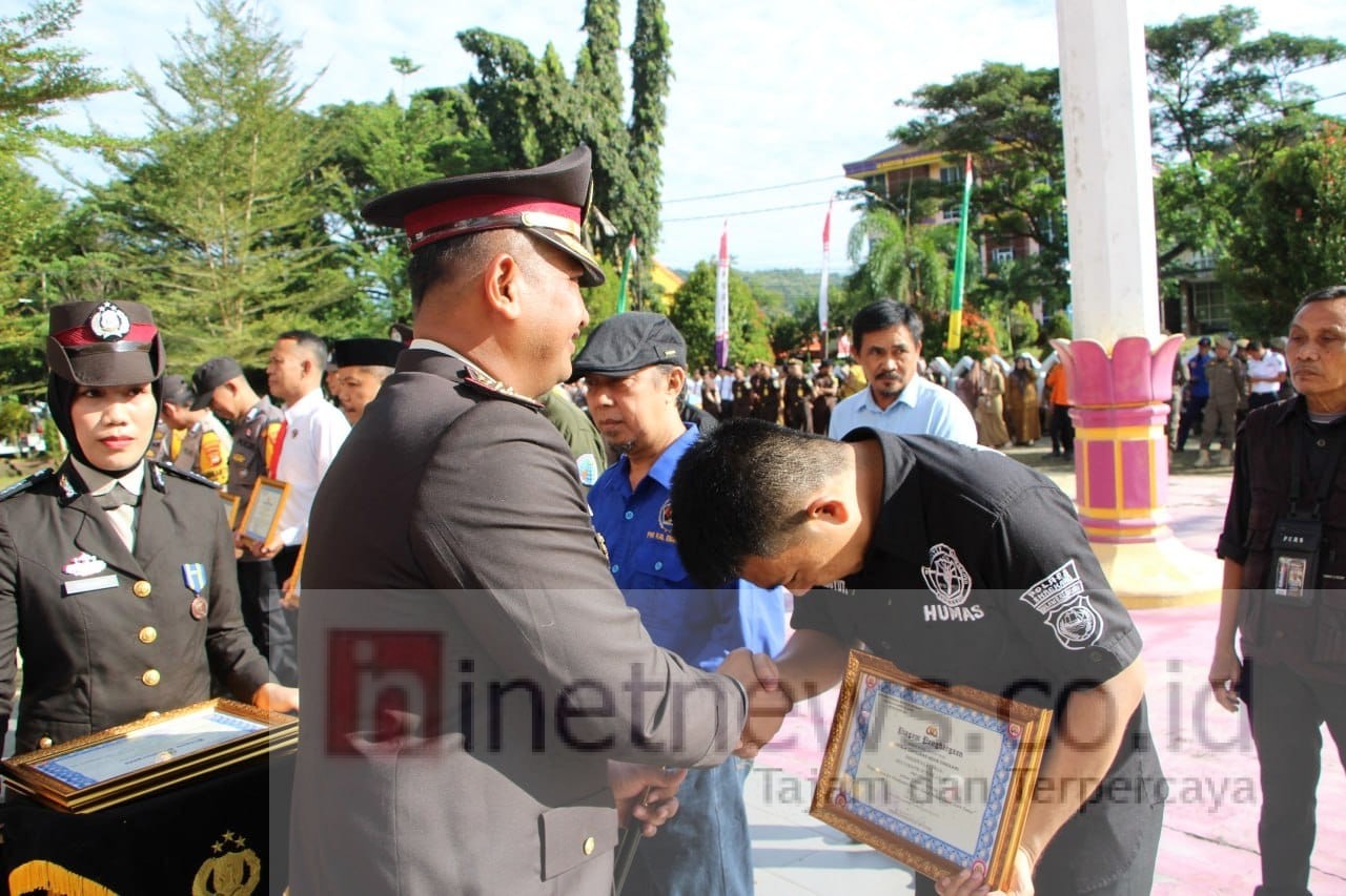 inetnews.co.id, Anggota Humas Polres Enrekang Brigadir polisi Muhammad Suyuti Sudirman, SH salah satu personil Polres Enrekang mendapat dan menerima penghargaan dari Kapolres Enrekang AKBP.Hari Budiyanto SH.SIK, MH di momen HUT Bhayangkara ke 79.