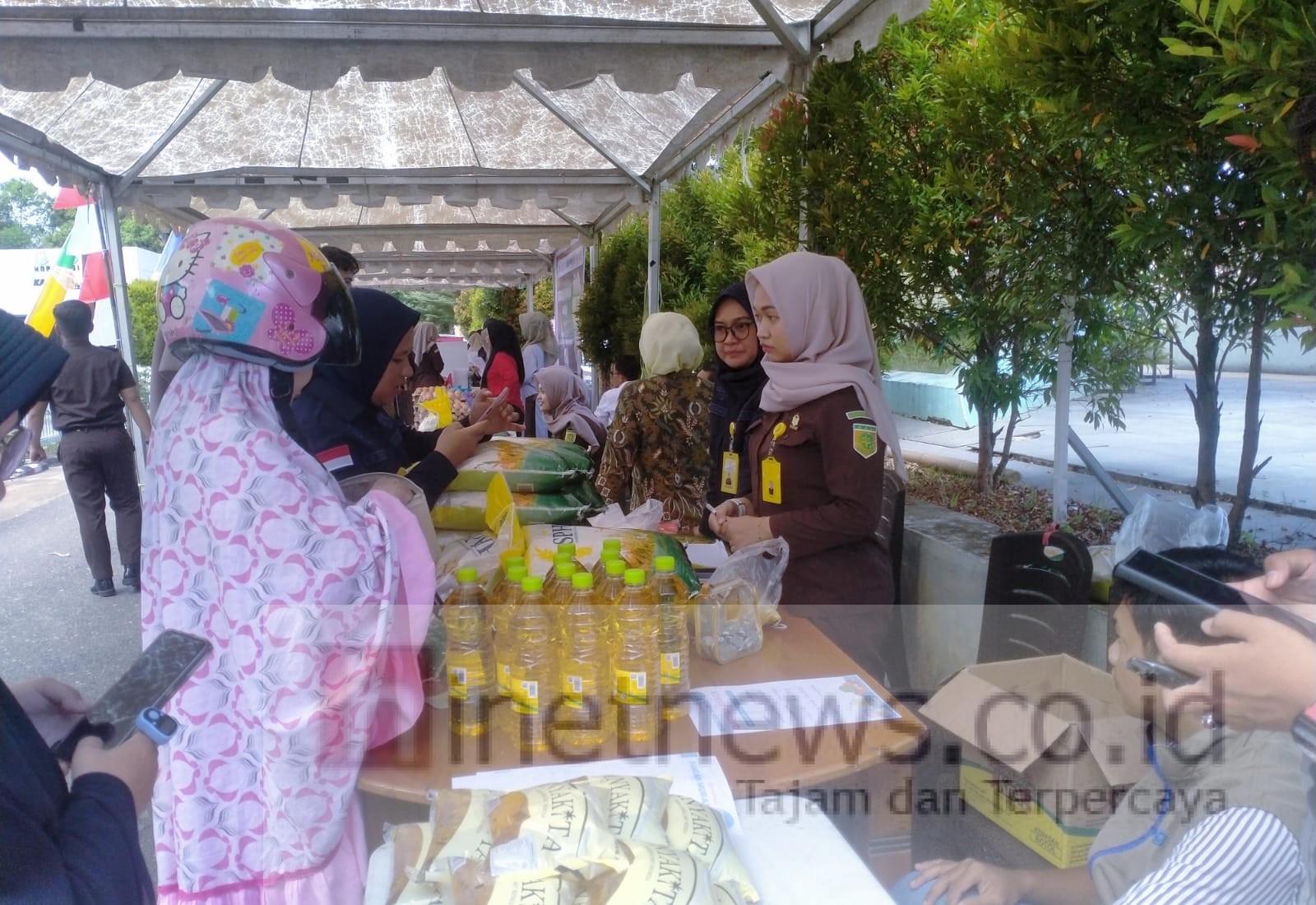 Suasana Tenda dari mitra kejaksaan dari lingkungan OPD seperti Dinas TPHP,Dinas Kepang, Bulog, Disperindag, Disnakin serta stan IAD jual minuman dingin dan snack begitu membuka lapak gerakan pangan murah menyemut pembeli.