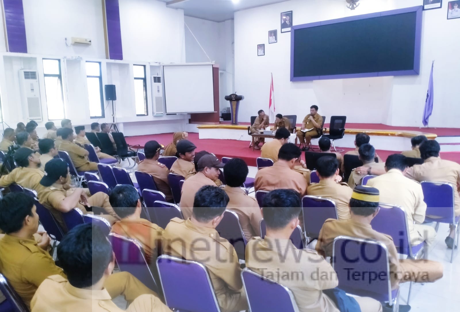 Plt. sekda yang baru menjabat memberi penjelasan kepada para kepala desa bahwa kondisi Pemda Enrekang saat ink mengalami kontraksi anggaran, meski belum kategori minus atau defisit kronis.