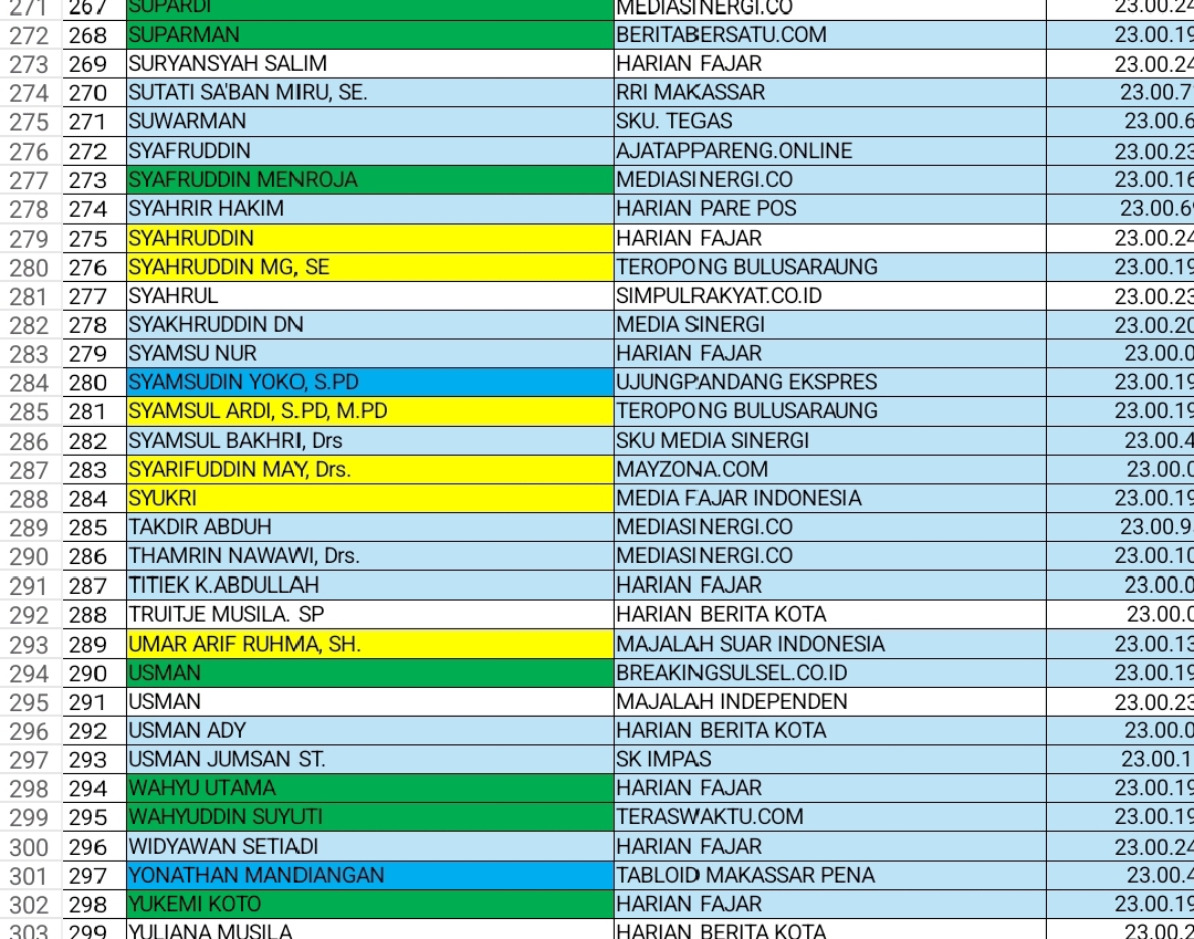inetnews.co.id- Pengurus Pusat Persatuan Wartawan Indonesia (PWI) telah menetapkan Daftar Pemilih Sementara (DPS) pada Konferensi Provinsi PWI Sulsel yang akan berlangsung pada 2 Juni mendatang. Dalam DPS yang diterbitkan PWI Pusat tersebut jumlah angota PWI yang menjadi pemilik suara yakni sebanyak 306 anggota.