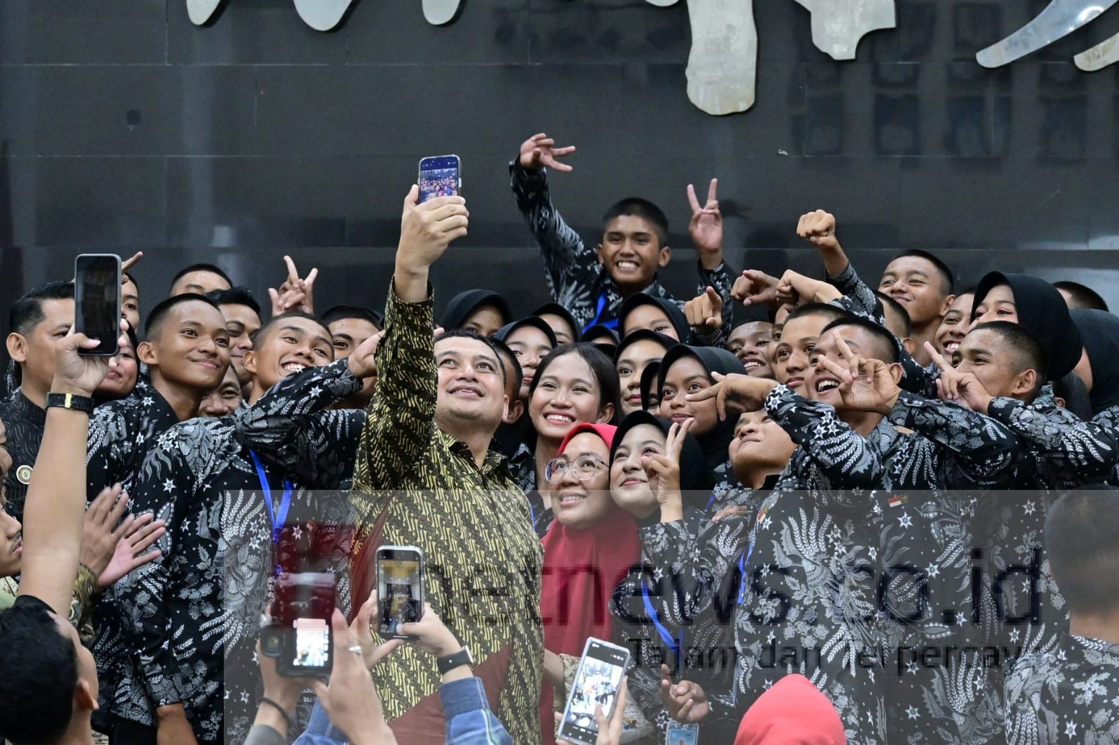 Suasana semakin akrab ketika Wali Kota Makassar turut berswafoto selfie bersama anggota Paskibraka. Momen ini disambut riuh gembira oleh para peserta yang merasa dihargai dan dekat dengan sosok pemimpin kotanya.