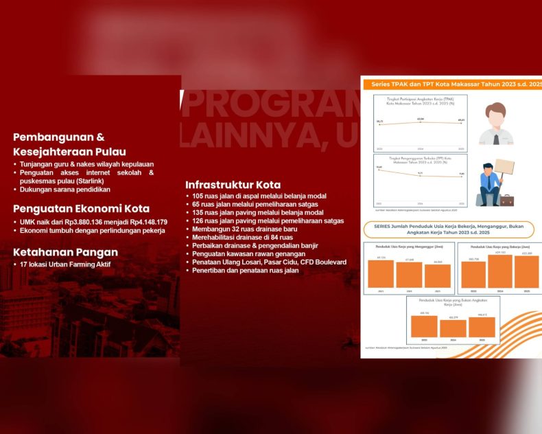 Diketahui, berdasarkan rilis resmi dikeluarkan Badan Pusat Statistik (BPS), data terbaru menunjukkan berbagai indikator makro pembangunan Kota Makassar pada tahun 2025 mengalami perbaikan signifikan dibandingkan tahun sebelumnya.