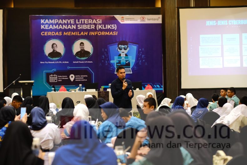 inetnews.co.id – Dinas Komunikasi dan Informatika (Diskominfo) Kota Makassar menggelar program Kampanye Literasi Keamanan Siber (KLiKS) dengan tema “Cerdas Memilah Informasi” bagi peserta didik Sekolah Menengah Pertama (SMP).